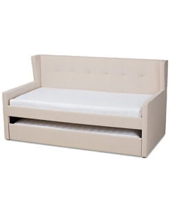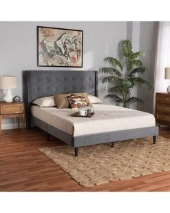Baxton Studio Gretchen Modern & Contemporary Upholstered & Wood Queen Platform Wingback Bed Home