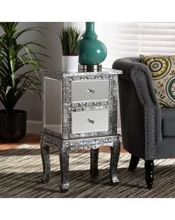 Baxton Studio Wycliff Metal And Mirrored Glass 2-Drawer Nightstand Home