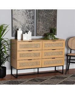 Baxton Studio Wyer Mid-Century Modern 6-Drawer Storage Cabinet Home