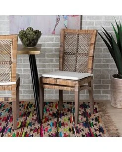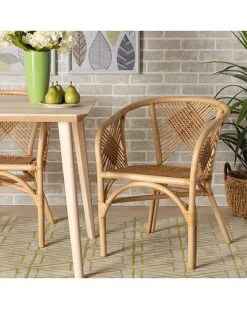 Baxton Studio Kyoto Modern Rattan 2-Piece Dining Chair Set Home