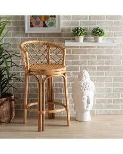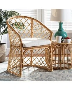 Baxton Studio Nafaro Modern Bohemian Natural Rattan Metal Dining Chair With Cushion 2Pc Set Home