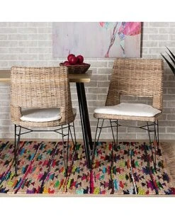 Baxton Studio Pro Modern Bohemian Rattan And Black Metal 2-Piece Dining Chair Set Home