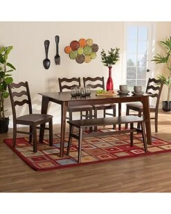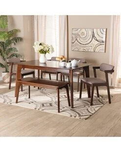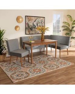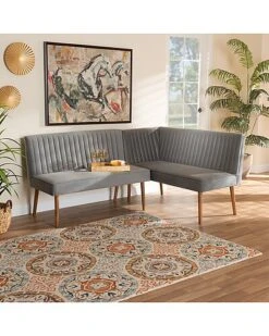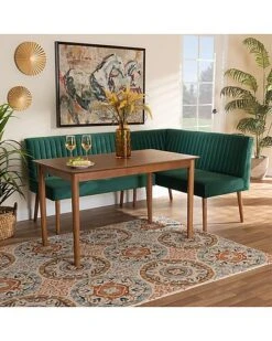 Baxton Studio Alvis Mid-Century Modern Velvet Upholstered 2Pc Dining Nook Banquette Set Home