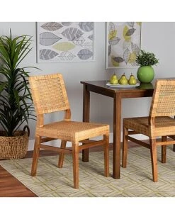 Baxton Studio Lesia Rattan And Wood 2pc Dining Chair Set Home
