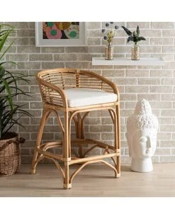 Baxton Studio Maverick Upholstered Rattan Counter Stool Home