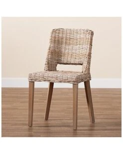 Baxton Studio Magy Modern Bohemian Grey Rattan And Finished Wood 2-Piece Dining Chair Set Home