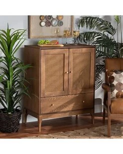 Baxton Studio Ramiel Mid-Century Modern Ash Rattan 1-Drawer Sideboard Home
