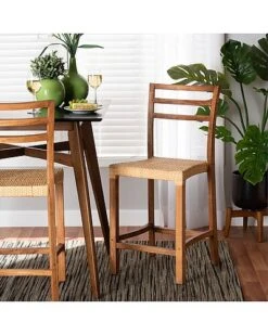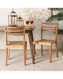 Baxton Studio Arthur Wood And Natural Rattan 2pc Dining Chair Set Home