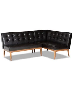 Baxton Studio Arvid Mid-Century Modern Upholstered 2pc Wood Dining Corner Sofa Bench Home