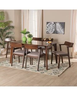 Baxton Studio Enver Modern Bohemian Grey Rattan And Brown Wood 2-Piece Dining Chair Set Home