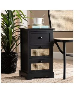 Baxton Studio Dacey Mid-Century Modern Rattan 3-Drawer Storage Cabinet Home