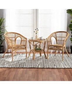 Baxton Studio Alleta Modern Bohemian Rattan 2-Piece Dining Chair Set Home
