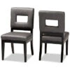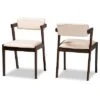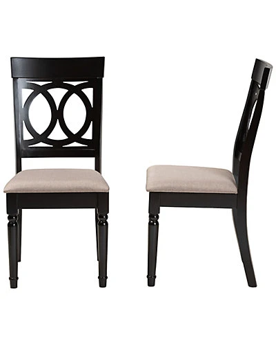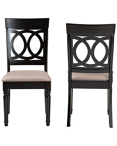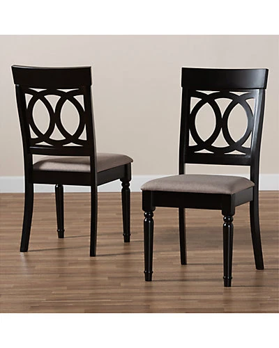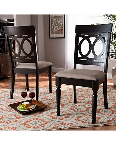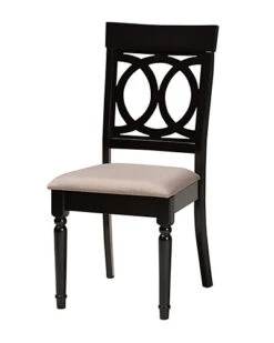 - Design details: Enhance your dining space with the elegance of the Lucie dining chair. Made in Malaysia, the Lucie is constructed from solid oak wood and showcases a rich espresso brown finish that complements the light polyester fabric upholstery. Designed with both comfort and style in mind, the Lucie features a plush foam-padded seat, as well as an exquisite cut-out design on its back. The Lucie dining chair comes in a pack of two and requires assembly. Turned legs add a classic, refined touch. Dimensions: 38.6″ high x 17.9″ wide x 22″ deep; Seating dimensions: 18.7″ wide x 15.7″ deep x 17.9″ high (from Floor); Back: 19.7″ high; Legs: 16.9″ high.