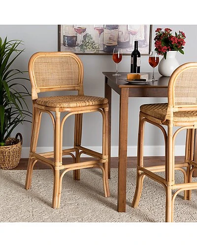 - Capture the charm of an exotic paradise in your space with the stunning Adrena bar stool. Handmade, this Bohemian inspired piece is entirely comprised of natural rattan. Its rounded backrest and seat lend a smooth display while woven rattan detailing exudes tropical appeal. The Adrena requires assembly and features a convenient footrest for enhanced comfort. A perfect addition for casual lounges or home bars, the Adrena bar stool brings an unforgettable charisma to any space.