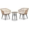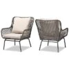 - Built for the outdoors, the Aimon patio chair encourages you to take advantage of your backyard. This chair is comprised of a solid metal frame wrapped in durable synthetic rattan. Its plush seat is padded with layers of foam and upholstered in weather-resistant fabric for exceptional comfort that is sure to last. Requiring assembly, the Aimon features sloped armrests for ergonomic comfort as you relax in the summer breeze. Angled legs complement its streamlined frame, making the Aimon patio chair a remarkable addition to any outdoor layout. Chair Dimensions: 33.1in High x 26in Wide x 25.6in Deep; Seating Area Dimensions 16.5in Wide x19.5in Deep x17.75in High; Arm Height: 24.75in; Legs: 14.5in High; Back: 15.35in High