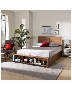 - Enhance your bedroom with the convenience and versatility of the Alba bed. the Alba is constructed from sturdy wood finished in a neutral ash walnut to easily blend in with a large variety of room layouts and styles. Four underside drawers, along with three spacious storage compartments located at the footboard, provide the Alba with superb storage capability. Assembly is required and a box spring isnt needed, as the bed comes with internal slats for mattress support. The inset detailing of the headboard showcases expert craftsmanship, making the Alba bed a fantastic addition to any bedroom. Overall Dimensions: 58.27″ wide x 85.7″ deep x 58.3″ high; Headboard Dimensions: 22.4″ High x 55.9″ Wide x 0.9″ Thick; Dimensions: 13.9″ high x 58.27″ wide x 84.8″ deep; Height from floor to top of slat: 12.4″ high; Legs: 12.99″ high; Inside dimensions (mattress size): 54″ wide x 74″ deep; Storage: 34.45″ wide x 18.9″ deep x 7.87″ high;