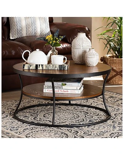 - Complete your living room with the stunning Albany coffee table. the Albany showcases a unique contrast between a black finished metal frame and a walnut brown finished wood tabletop. The table is equipped with an additional lower shelf, allowing items to be stored nearby while keeping the tabletop clear for use. Requiring assembly, the rounded shape of the piece allows it to easily blend in with various room layouts. Demonstrating vintage industrial charm, the Albany coffee table is a fantastic addition to any home. Dimensions: 16.5″ High x 32″ Wide x 32″ Deep; Shelf: 7″ H x 26.25″ W x 26.25″ D