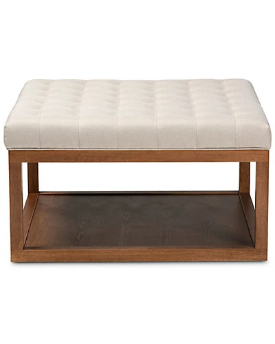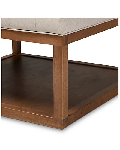 - Design details: Chic and versatile, the Alvere ottoman is a smart addition to any living space. Constructed from wood, the Alvere is upholstered in a soft, durable polyester fabric. Elaborate biscuit tufting enhances seating comfort while also lending an elegant look. More than just an ottoman, the Alvere is fitted with a lower shelf that features display space for books, magazines, and more. Use this versatile piece as a footstool, seating bench, or coffee table. The Alvere ottoman is made in China and will arrive fully assembled.