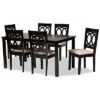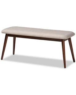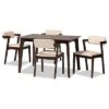 - Design details: Give your dining space a stylish retro-inspired look with the Amato 6-piece dining set. The Amato set includes one table, one bench, and four chairs. Each piece is built from solid wood in warm walnut brown finish that complements the light gray polyester fabric upholstery. Foam padded seats provide the utmost dining comfort. Inspired by mid-century modern design, the pieces feature a low silhouette and angled, tapered legs. The Amato 6-piece dining set is made in Malaysia and requires assembly.