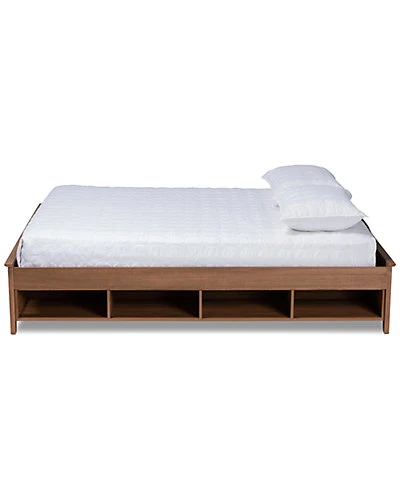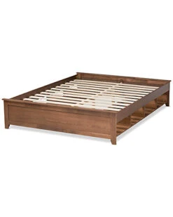 - Create an atmosphere of natural warmth with the Anders bed. Convenience is at the forefront of this bed’s design, as it contains eight storage shelves built into the frame. Made in Malaysia, the Anders is comprised of sturdy wood finished in a soothing walnut brown. Assembly is required and a box spring isn’t necessary, as the Anders comes with internal slats for mattress support. The sharp craftmanship and storage capability of the Anders makes it an ideal fit for rooms with limited space. Dimensions: 16.06″ high x 58.5″ wide x 79.53″ deep; Height from floor to top of slat: 12.4″ high; Legs: 16.06″ high; Inside dimensions (mattress size): 54″ wide x 74″ deep; Storage: 74.8″ wide x 14.84″ deep x 6.5″ high.
