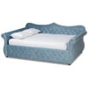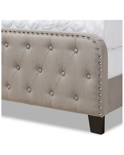 - Design details: Anchor your bedroom in style and comfort with the Annalisa bed. Crafted with a sturdy wood frame, the Annalisa is upholstered in an elegant linen-like fabric and padded with foam for the utmost relaxation. Glamorous silver nailheads accentuate the soft curves in the headboard and footboard, while button tufting lends a regal look. Black tapered feet add a sleek touch. This bed requires a box spring for use. The Annalisa bed is made in Malaysia and requires assembly.
