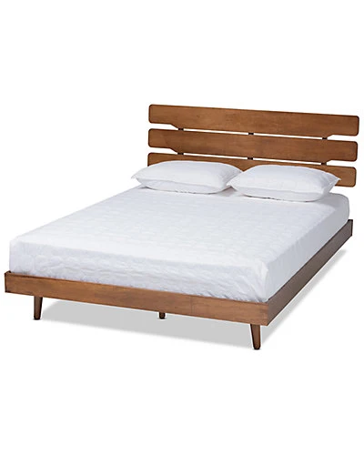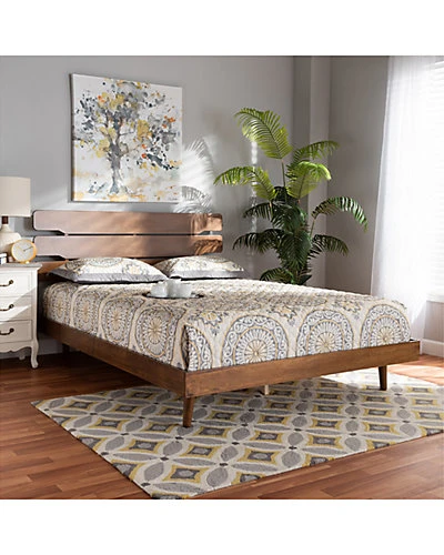 - Design details: Cool mid-century design meets modern comfort in the Anzia bed. This solid rubberwood bed displays a warm walnut brown finish that highlights the beautiful wood grain patterns. The headboard features a unique, cut-out slat design, adding visual interest to your space. Its low platform is set on top of angled, tapered legs for a cozy, retro feel. The Anzia bed is made in Malaysia and requires assembly.