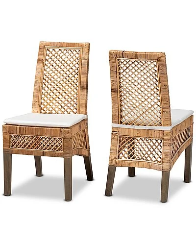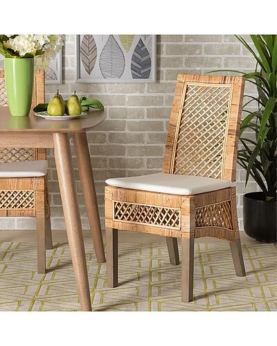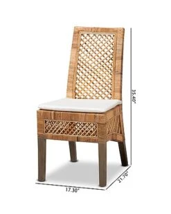 - The Argos dining brings charming, tropical-style craftsmanship to your space in unforgettable style. this chair is comprised of a sturdy mahogany wood frame wrapped in natural rattan. Each seat features a plush, fabric upholstered cushion for superb comfort while the tall backrest offers a smooth embrace. The Argos will arrive fully assembled and utilizes angled back legs for excellent stability and support. Intersecting rattan rods form a stunning geometric display, making the Argos dining chair a remarkable addition to any dining space.