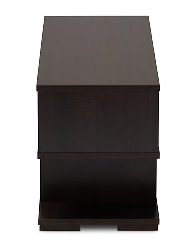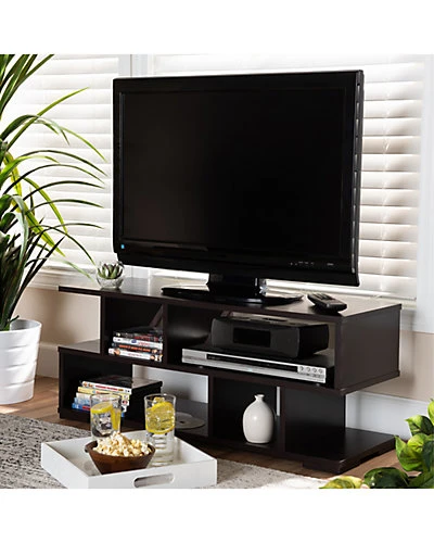 - Design details: A clean, contemporary design makes the Arne TV stand an easy addition to any living space. Constructed from wood, the Andor features a dark brown finish for a refined look. Six open shelves provide space to display entertainment consoles, DVDs, and more. Each shelf is a different size, giving this piece a cool, modern look. The Arne TV stand is made in Malaysia and requires assembly.