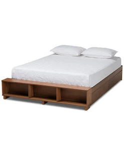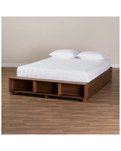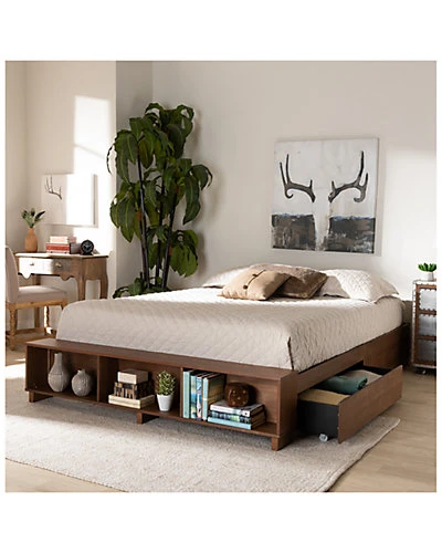 - Find a convenient solution to your bedroom storage needs with the Arthur bed. A wood bench fitted with three shelves lines the front of the frame, perfect for showcasing books or decorations. The bed is made in Malaysia and includes four underside drawers to make this piece especially helpful in rooms with limited space. Assembly is required and a box spring isnt necessary, as the bed comes with internal slats for mattress support. The clean design of the Arthur is complemented by wood, giving your space a modern, comfortable appeal. Dimensions: 13.9″ high x 64.96″ wide x 89.84″ deep; Height from floor to top of slat: 12.4″ high; Legs: 12.99″ high; Inside dimensions (mattress size): 60″ wide x 80″ deep; Storage: 37.01″ wide x 18.9″ deep x 7.87″ high.