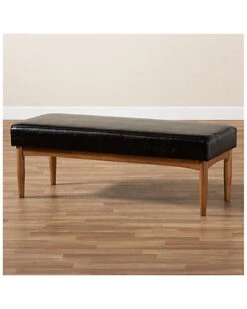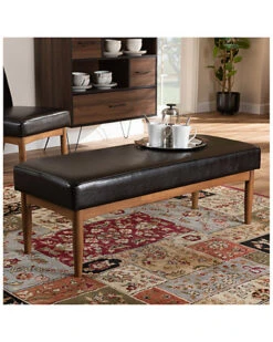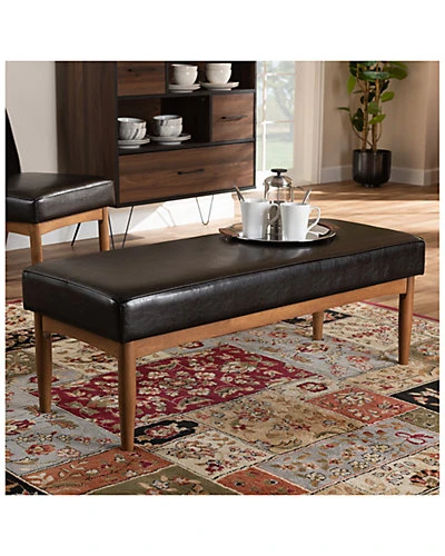 - Enjoy weekend brunches and casual dinners with the Arvid dining bench. Made in Malaysia, the Arvid is constructed from wood in a walnut brown finish and fitted with dark brown faux leather that is easy to coordinate with a wide range of color palettes. Inspired by stylish mid-century modern design, the bench showcases tapered legs. The Arvid dining bench requires assembly and is designed to be placed in the corner of your kitchen or dining room. Combine this bench with the other pieces in the Arvid collection to create a cozy dining nook. Dimensions: 17.1″ high x 47″ wide x 17.7″ deep; Seating dimensions: 47″ wide x 17.7″ deep x 17.1″ high (from Floor); Legs: 11.4″ high.