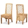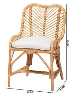 - Immerse yourself in the charisma of a tropical getaway with the superb Arween dining chair. Handmade, this bohemian piece consists of a natural rattan frame fitted with a plush seat cushion. Its tapered backrest is interlaid with slim rattan rods for an airy display that ensures a comfortable embrace. The Arween will arrive fully assembled and features a crossbar between its legs for excellent stability and support in rustic design. Ideal for casual meals or larger get-togethers, the Arween dining chair brings unforgettable charm to any space.