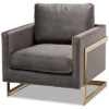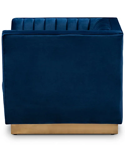 - Design details: Make a chic statement in your living room with the Aveline chair. Featuring a sleek silhouette, the Aveline is upholstered in a rich velvet fabric that feels exceptionally soft to the touch. Channel tufting highlights the stunning sheen in the velvet, while the striking antique gold finished metal base anchors the glamorous look of this chair. Designed for both style and comfort, the Aveline is generously padded with foam to provide a truly luxurious feel. The Aveline chair is made in China and will arrive fully assembled.