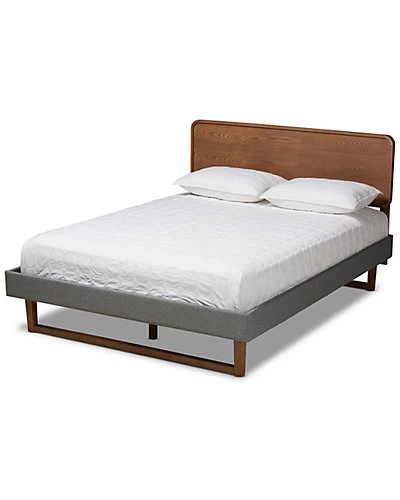 - Design details: Warm wood tones are paired with soft fabric upholstery to give the Ayla bed a stylish and cozy feel. Set on top of a sturdy wood frame, the Ayla is built with a low platform upholstered in a soft, durable grey fabric that complements the walnut brown finish on the wood. The headboard features curved edges and inset detailing for a cool, mid-century modern inspired look. Add some crisp white sheets and a plush duvet to complete the look. The Ayla bed is made in Malaysia and requires assembly.