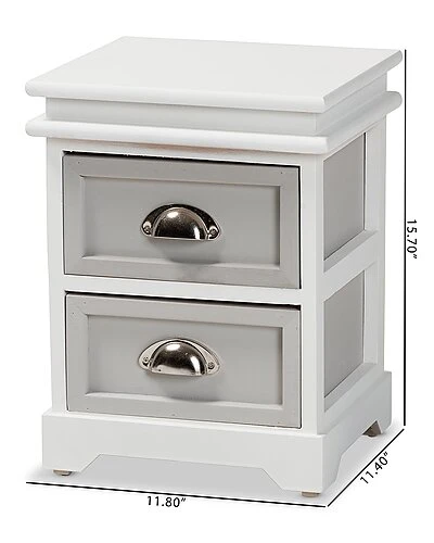 - Enjoy your bedtime routine with the modern convenience of the stunning Cachet nightstand. this nightstand is comprised of a sturdy wood frame accented with inset paneling. Two drawers offer space to organize bedside essentials while reserving the tabletop for nightly use. The Cachet is adorned with smooth metal drawer handles that add a contemporary feel. A fantastic evening assistant, the Cachet nightstand updates the modern bedroom. Overall Dimensions: 15.70in High x 11.80in Wide x 11.40in Deep; Drawer Dimension: 8.50in Wide x 8.50in Deep x 4.00in High; Legs: 2.00in High;