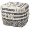 - Design details: Add a cozy, bohemian touch to any space with the Caiman pouf. Handwoven from wool and hemp, the Caiman features a stylish blend of natural tones and vibrant hues. Its rich colors are spun into a chic striped pattern. This versatile piece can be used as a seat, footstool, or casual coffee table. Made in India.