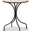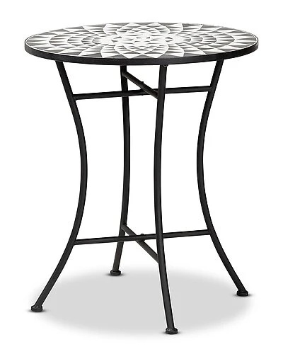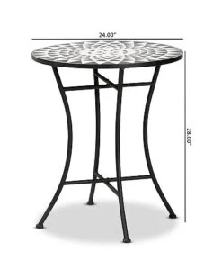 - Spend your time dining in the warm summer air with the graceful Callison outdoor dining table. this table is made from solid metal. The round tabletop features colored glass accents organized in a geometric pattern for a stunning, mosaic display that is sure to catch the eyes of any visitors. The Callison requires assembly and utilizes concave legs for excellent stability and support in elegant style. Making summer days a little more memorable, the Callison outdoor dining table is a wonderful addition to any patio or deck. Overall Dimensions: 28.00in High x 24.00in Wide x 24.00in Deep