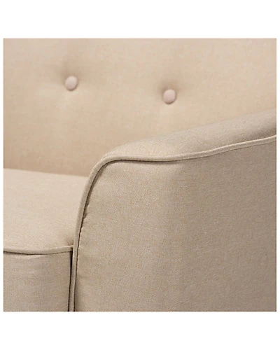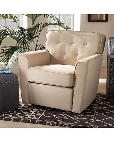 - Design details: A modern take on the classic armchair, the Canberra armchair is a cozy place to settle into after a long day. Fitted with a swivel base, the Canberra features soft, high density foam cushions for ample comfort. Its sturdy wood frame is upholstered in an elegant beige linen-like fabric that complements many color palettes. All-over piping and light pink button tufting add a touch of refinement. The Canberra armchair is made in China and will arrive fully assembled.