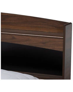 - The sophisticated design and soothing color palette of the Christopher bed elevate any bedroom into a haven of comfort. This bed is equipped with a double shelved headboard to store all your bedside necessities, replacing the need for a nightstand. The bed is made in Malaysia from robust, wood, fit for any bedroom in need of a peaceful atmosphere. Assembly is required and a box spring isnt necessary, as the Christopher comes with a paneled platform base for mattress support. The comfort and handiness of the Christopher bed create a relaxing feel bedroom. Dimensions: 39.37″ high x 64.17″ wide x 88.15″ deep; Height from floor to top of slat: 27.44″ high; Inside dimensions (mattress size): 60″ wide x 80″ deep.