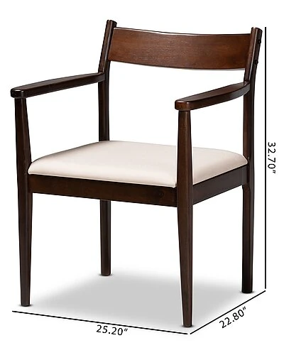 - Reintroduce the allure of classic design into your space with the lovely Coretta dining chair. Made in Malaysia, this stunning piece is comprised of a solid wood frame fitted with a foam-padded cushion upholstered in smooth fabric. The curved backrest provides superb back support during meals, while ergonomic armrests offer enhanced comfort. The Coretta dining chair requires assembly and features straight legs for excellent stability in a distinct silhouette. Blending timeless elegance with modern standards, the Coretta dining chair redefines any dining space. Overall Dimensions: 25.20″ W x 22.80″ D x 32.70″ H; Seating Area Dimensions: 22.80″ W x 18.40″ D x 18.10″ H; Back: 14.60″ H; Legs: 14.00″ H; Arms: 26.25″ H;