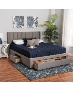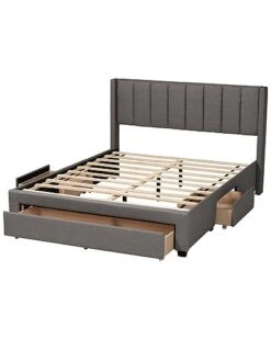 - Bask in the clean serenity of your bedroom hideaway with the beautiful Coronado storage bed. Made in Malaysia, this mid-century inspired piece consists of a solid wood frame padded with plush foam and upholstered in fabric. Remarkably efficient, this classic design accommodates for modern needs with a wide drawer at the footboard as well as two additional drawers located at the sides. The Coronado requires assembly and utilizes wood slats for mattress support, eliminating the need for a box spring. A channel tufted design tucked inside the wingback headboard creates a gorgeous backdrop, making the Coronado storage bed a superb upgrade for any bedroom.