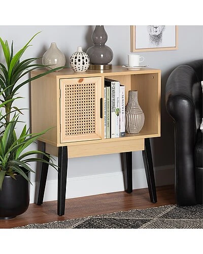 - Nurture a hearty atmosphere in your space with the Dacre console table. this handy piece is comprised of a sturdy wood frame adorned with natural rattan. The open shelf creates a lovely display for decorative items while an additional shelf behind the door offers secure storage space. The Dacre requires assembly and features angled legs that offer excellent stability and support in stunning style. A wonderful blend of classic and contemporary design, the Dacre console table revitalizes any interior space. Overall Dimensions: 27.60in High x 23.60in Wide x 11.80in Deep