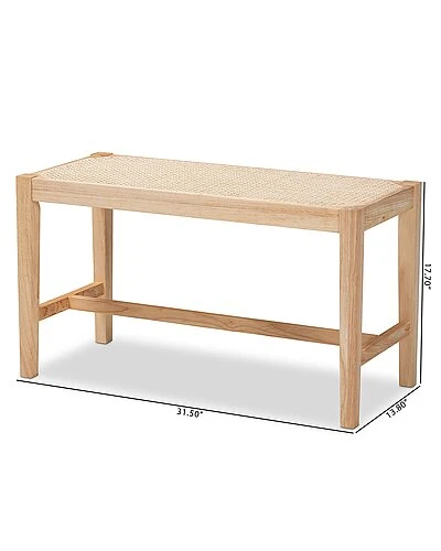 - Develop your home with the convenient and comfortable seating of the Danyl bench. this bench is comprised of a sturdy wood frame with natural rattan accents. Its woven rattan seat creates a charming display inspired by mid-century modern design while providing smooth seating in an entryway or other shared space. The Danyl requires assembly and features an openwork frame that allows light to flow easily throughout the room, lending a more open feel in tight spaces. A lovely accent for any modern layout, the Danyl bench is an expert blend of style and comfort. Overall Dimensions: 17.70in High x 31.50in Wide x 13.80in Deep; Seating Area Dimensions: 31.30in Wide x13.50in Deep x15.80in High; Legs: 17.80in High;