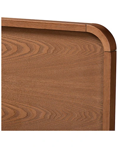 - Design details: Refresh your bedroom with the retro style of the Demeter bed. Built with a low platform set on top of angled, tapered legs, the Demeter displays all the hallmarks of stylish mid-century modern design. The headboard features curved edges and inset detailing, showcasing its fine craftsmanship. Constructed from sturdy wood, the Demeter flaunts a rich walnut brown finish that brings a sense of warmth to any color palette. The Demeter bed is made in Malaysia and requires assembly.