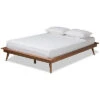 - Design details: Refresh your bedroom with the retro style of the Demeter bed. Built with a low platform set on top of angled, tapered legs, the Demeter displays all the hallmarks of stylish mid-century modern design. The headboard features curved edges and inset detailing, showcasing its fine craftsmanship. Constructed from sturdy wood, the Demeter flaunts a rich walnut brown finish that brings a sense of warmth to any color palette. The Demeter bed is made in Malaysia and requires assembly.