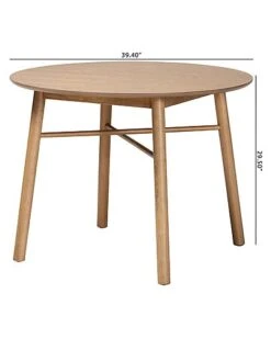 - Convey an atmosphere of carefree refinement in your space with the traditional charm of the Denmark dining table. this mid-century inspired piece is crafted from solid rubberwood. Its smooth, circular tabletop lends an effortlessly pleasant silhouette and comfortably seats four. The Denmark requires assembly and features angled legs connected by a crisscross base for excellent stability and support reminiscent of classic craftsmanship. Ideal for use as centerpiece during casual gatherings, the Denmark dining table is sure to leave an impression.