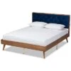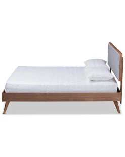 - Design details: Cool retro style meets modern craftsmanship in the Dilara bed. Built with a low platform set on top of angled, tapered legs, the Dilara displays all the hallmarks of stylish mid-century modern design. The headboard is upholstered in a soft, resilient polyester fabric and features rounded edges for contemporary look. A single row of button tufting adds a touch of refinement. Constructed from sturdy wood, the Dilara flaunts a rich walnut brown finish that complements any color palette. The Dilara bed is made in Malaysia and requires assembly.