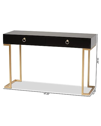 - Give your home a charismatic update with the lovely Beagan console table. this console table is comprised of sturdy wood supported by solid metal base. Two spacious drawers provide convenient storage space for all your essentials like keys, mail, and more. Requiring assembly, the Beagan features elegant ring pulls on the drawers for easy access in graceful design. With ample table space for decorative items, the Beagan console table is a wonderful upgrade to any entryway. Overall Dimensions: 29.50″ High x 47.20″ Wide x 15.70″ Deep; Drawers(Each): 21.50″ Wide x 12.60″ Deep x 3.30″ High; Legs: 24.20″ High;