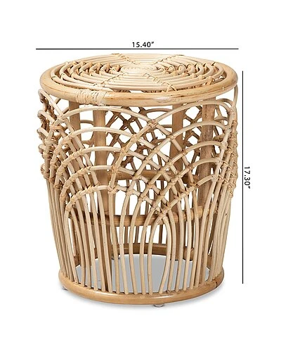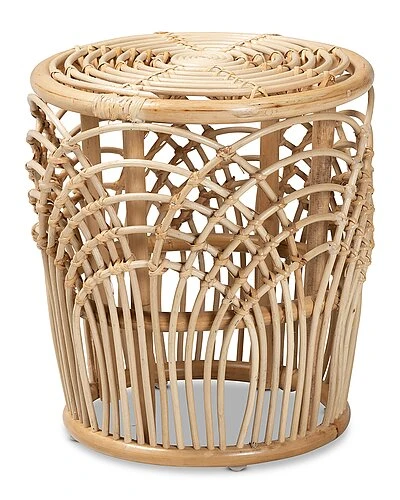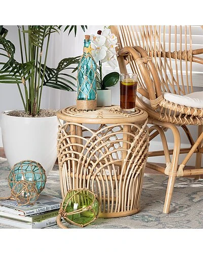 - Accentuate the calm aspects of your interior with the soothing tones of the Edena end table. Made in Indonesia, this table is comprised of a natural rattan frame adorned with woven embellishments. Its drum-like silhouette highlights the geometric patterns of the rattan while the rounded tabletop serves as a wonderful display for decorations. The Edena will arrive fully assembled and features an openwork design that allows light to flow naturally throughout the room. Compact yet expressive, the Edena end table adds a touch of warmth to any space.
