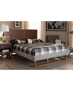 - Enhance your bedroom with the warm wood tones and light grey fabric found in the rustic modern Eloise bed. The Eloise bed features a supportive wood headboard, perfect for leaning against to read or watch television. Made in Malaysia, the bed includes a soft, fabric upholstered platform base that eliminates the need for a box spring. The Eloise requires assembly and comes with six pre-drilled holes on the headboard to provide five unique height options for a customized setup. Bring a cozy yet stylish ambiance to any bedroom with the inviting Eloise bed. Dimensions: 58.3″ high x 57.1″ wide x 78.3″ deep; Headboard: 58.3″ wide x 55.9″ long x 0.9″ thick; Height from floor to top of slat: 11.8″ high; Legs: 9.1″ high; Inside dimensions (mattress size): 54″ wide x 74″ deep.