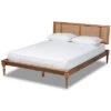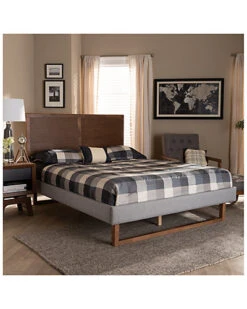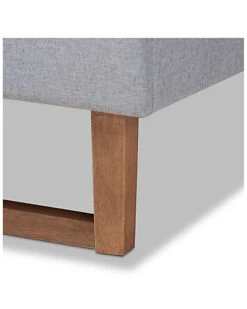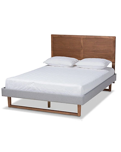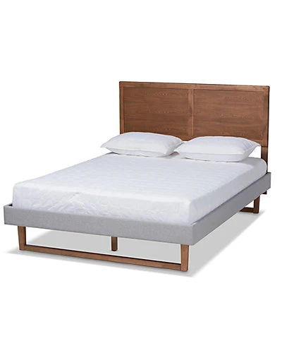 - Enhance your bedroom with the warm wood tones and light grey fabric found in the rustic modern Eloise bed. The Eloise bed features a supportive wood headboard, perfect for leaning against to read or watch television. Made in Malaysia, the bed includes a soft, fabric upholstered platform base that eliminates the need for a box spring. The Eloise requires assembly and comes with six pre-drilled holes on the headboard to provide five unique height options for a customized setup. Bring a cozy yet stylish ambiance to any bedroom with the inviting Eloise bed. Dimensions: 58.3″ high x 63.8″ wide x 83.4″ deep; Headboard: 58.3″ wide x 61.2″ long x 0.9″ thick; Height from floor to top of slat: 11.8″ high; Legs: 9.1″ high; Inside dimensions (mattress size): 60″ wide x 80″ deep.